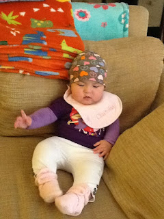 This is day 6 of the treatment. Mommy knew that the chemo treatment would be a bit of a roller coaster ride and today was a little bit of the bottom. The effects of the medicine were starting to add up - upset stomach, nausea, fever and on top of that mommy got a case of C. Diff. No one said this was easy. That means she is in contact isolation for 14 days meaning effectively no visitors and anyone who does needs to wear gloves and noncontact gowns. Poor mommy!